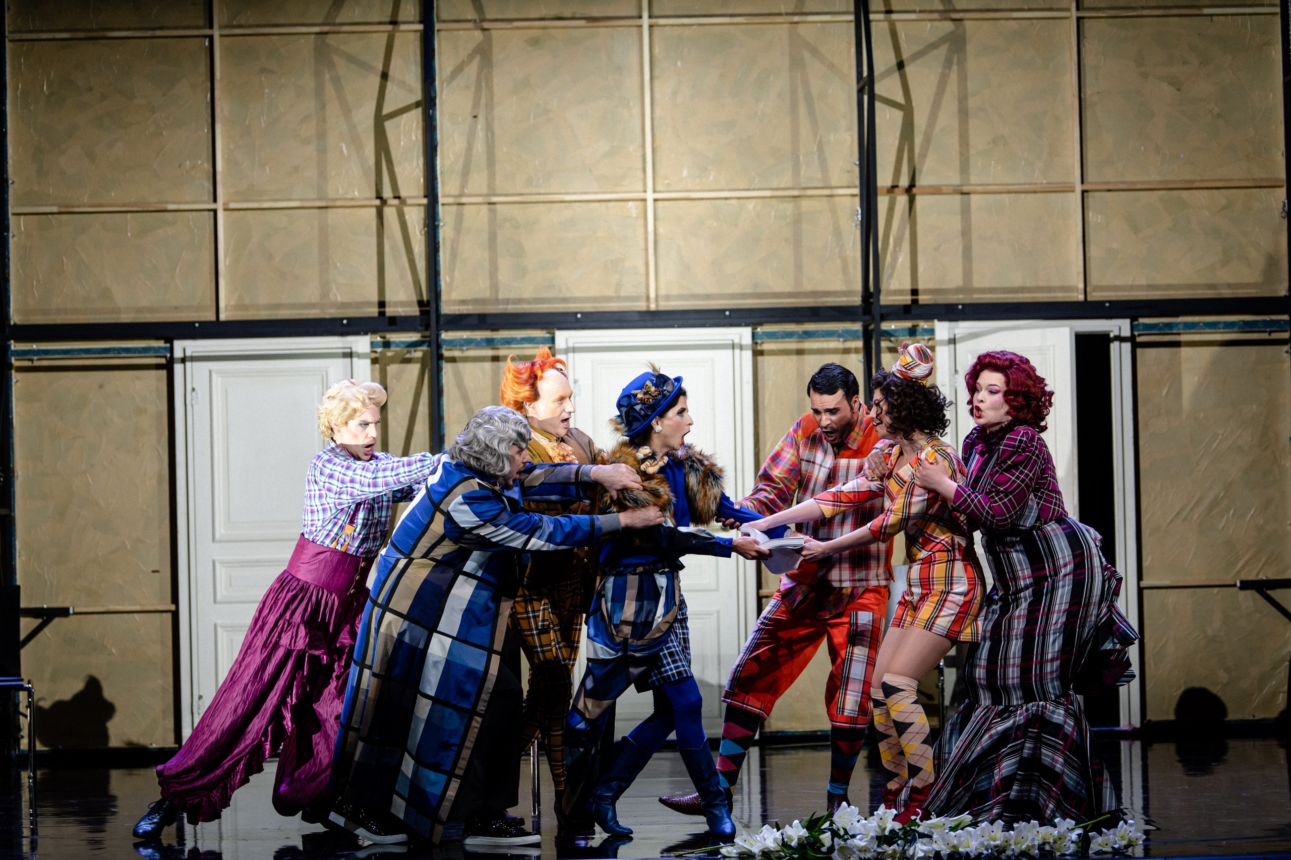 Wolfgang Amadeus Mozart: Le Nozze di Figaro // Theater Vorpommern 2024/2025 // Bühne: Stefan Rieckhoff // Kostüme: Julia Klug // Dramaturgie: Katja Pfeifer // Musikalische Leitung: Alexander Mayer // Regie: Wolfgang Berthold // Mit: Graf Almaviva – Maciej Kozłowski, Gräfin Almaviva – Antje Bornemeier, Susanna -Franziska Ringe/Melissa Domingues, Figaro – Alexandru Constantinescu, Cherubino – Pihla Terttunen, Marcellina – Elisabeth Starzinger, Bartolo – Jovan Koščica, Basilio – Semjon Bulinsky, Don Curzio – Bassem Alkhouri, Barbarina – Soobhin Kim, Antonio – Thomas Rettensteiner // Fotos: Peter van Heesen